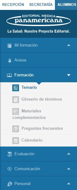 En la zona de ALUMNOS tienes acceso a los materiales de formación y las pruebas de evaluación.
