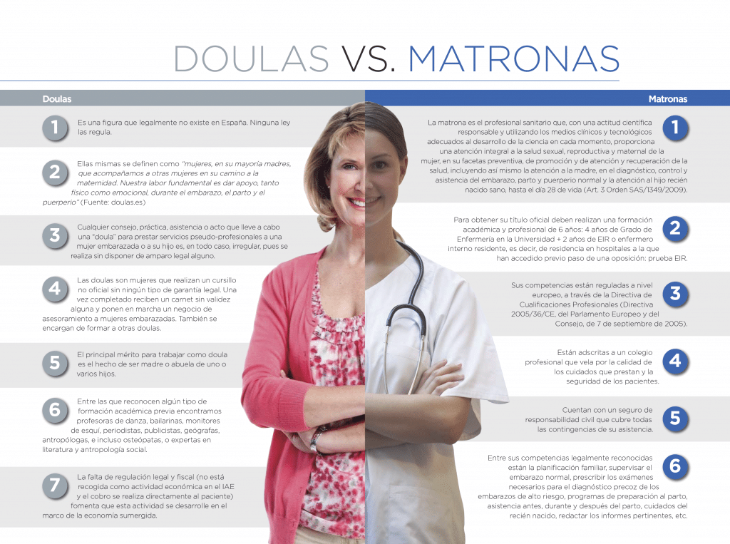 El propio Consejo General de Enfermería se vio obligado a publicar un informe sobre las doulas, para alertar a la sociedad: Informe Consejo G. Enfermería de España. Tuvo una importante repercusión mediática y durante un tiempo, se frenó el problema.