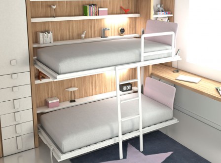 Esta opción ya existía cuando nosotros éramos niños, pero es un producto que ha evolucionado muchísimo. Los fabricantes de muebles, conscientes de este problema de hoy en día, han desarrollado mucho esta alternativa y ya casi todos tienen literas y camas abatibles en sus catálogos.