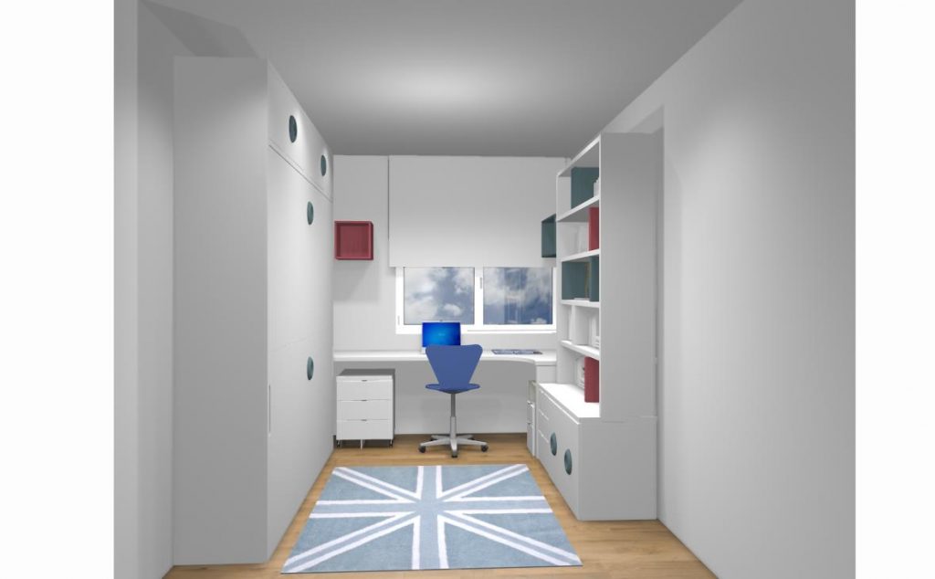 La ventaja principal y evidente es el aprovechamiento máximo del espacio útil. Tienes el mueble pegado a la pared, con un fondo de 35 cm en mi caso, y el resto de la habitación libre. ¿Qué supone esto? Que en habitaciones medianas o pequeñas como las de ahora, donde los niños con la cama y la mesa no tienen casi sitio para jugar, pasas a tener una habitación totalmente despejada y con todo el espacio disponible.